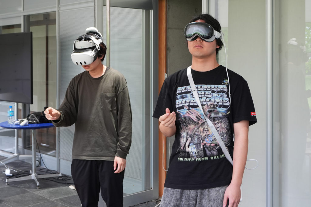 弊社より、日本未発売の「Apple Vision Pro」を2台、2023年10月に発売された「Meta Quest 3」をお持ちし、学生の方々に体験頂きました。Apple Vision Proは、2024年2月にアメリカで発売されたばかりの空間コンピューティングデバイスで、弊社代表の蟹江がアメリカまで赴き入手したものです。
